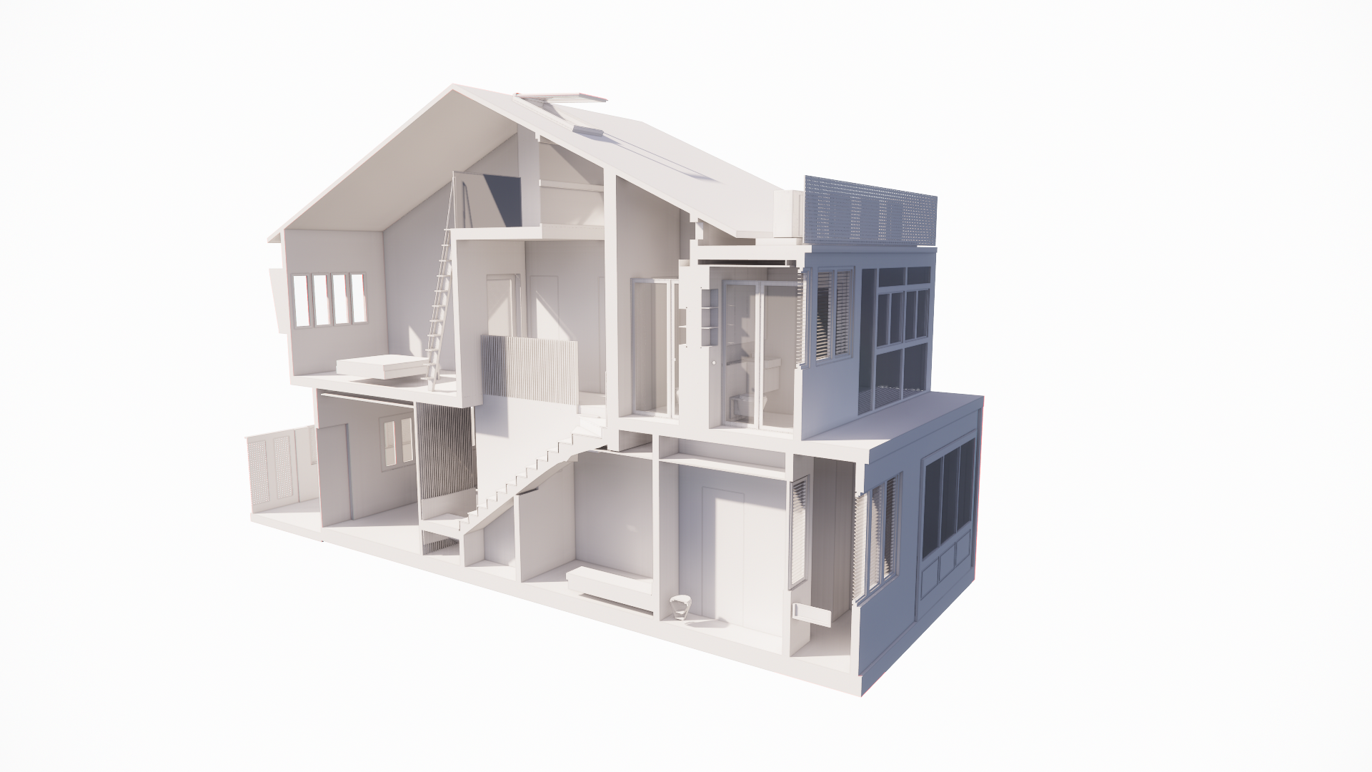 Overall, this house embodies modern minimalist design with subtle industrial influences, emphasizing simplicity, functionality, and clean lines, while keeping the space airy and uncluttered.